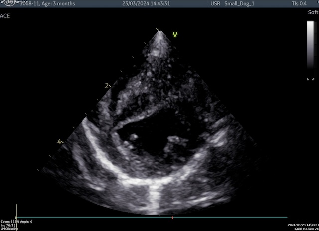 先日、他院から心雑音の指摘を受け当院に来院された子犬さん。